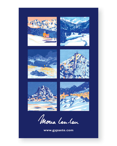 Pochette de 6 cartes postales "Les joies de l'hiver" réalisées en collaboration avec Mona Leu-Leu.
